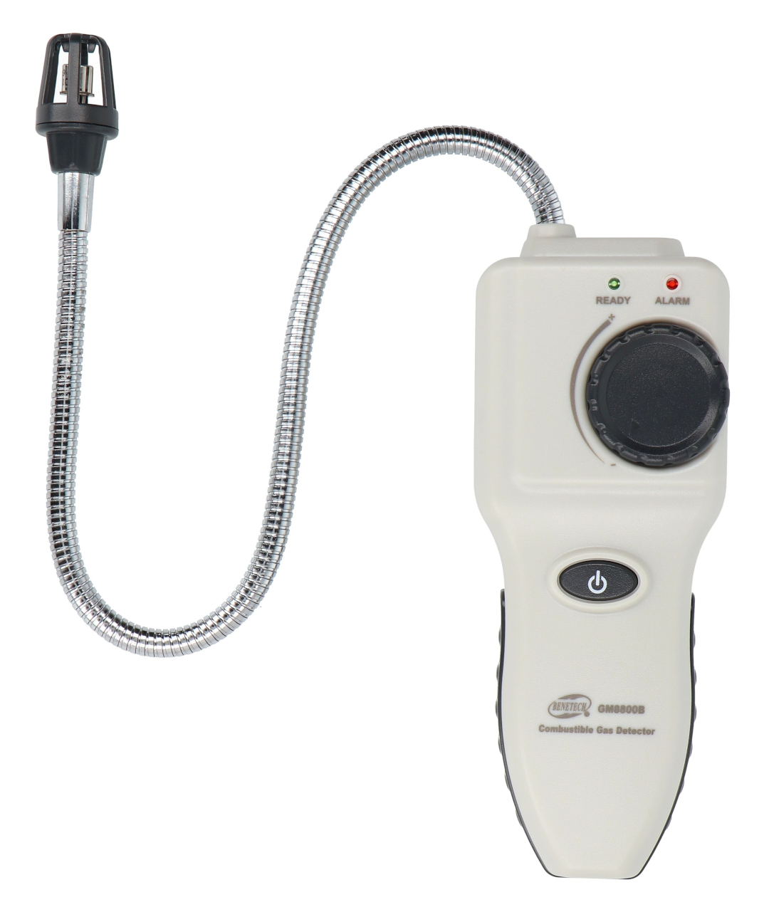 Benetech GM8800B to profesjonalny detektor gazów łatwopalnych przeznaczony do wykrywania wycieków gazu w instalacjach domowych i przemysłowych. Urządzenie wykorzystuje półprzewodnikowy czujnik o wysokiej czułości, który pozwala wykryć nawet niewielkie stężenia gazu, już od 50 ppm dla metanu. Detektor reaguje sygnałem dźwiękowym oraz diodami LED, umożliwiając szybkie zlokalizowanie źródła nieszczelności. Dzięki elastycznej szyjce pomiarowej o długości niemal 38,5 cm możliwa jest kontrola trudno dostępnych miejsc, takich jak połączenia rur, zawory czy wnętrza szafek. Prosta obsługa, funkcja autokalibracji oraz regulacja czułości sprawiają, że GM8800B jest odpowiedni zarówno dla profesjonalistów, jak i użytkowników domowych.