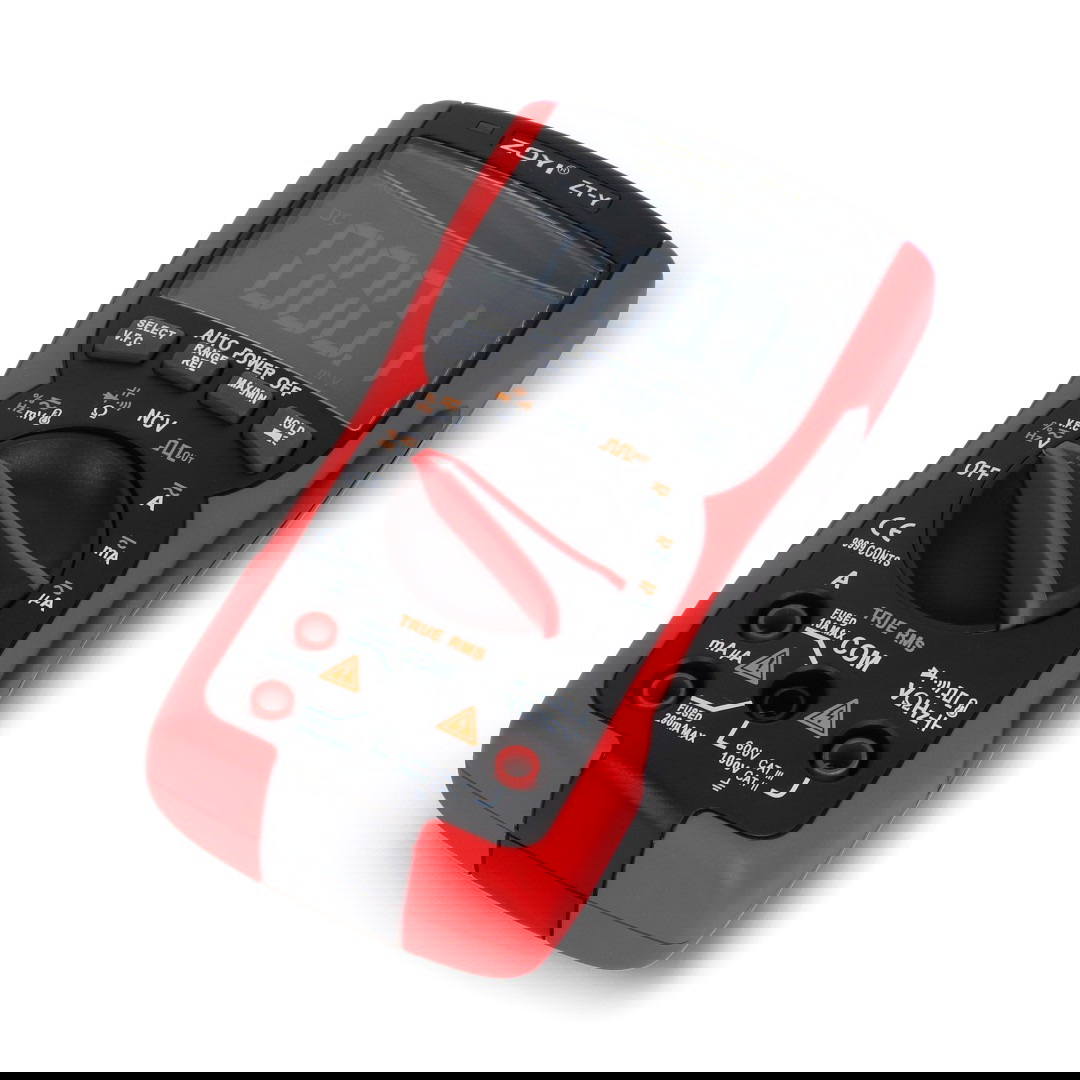 ZOYI ZT-Y to nowoczesny multimetr cyfrowy, łączący wysoką funkcjonalność z prostotą obsługi. Oferuje automatyczny dobór zakresów (auto-range) z możliwością ręcznego przełączania, co umożliwia szybkie i precyzyjne pomiary napięcia, prądu, rezystancji, pojemności, częstotliwości oraz temperatury. Urządzenie posiada funkcję True RMS, testowanie diod i ciągłości obwodu z buzzerem oraz NCV do bezkontaktowej detekcji napięcia. Wyposażony w czytelny, podświetlany wyświetlacz LCD z kontrastem, funkcję Data Hold, pomiar REL, wartości MIN/MAX, a także wbudowaną latarkę. Kompaktowa obudowa, wysoka odporność mechaniczna oraz zasilanie trzema bateriami AAA czynią go idealnym narzędziem dla elektryków, elektroników i majsterkowiczów.