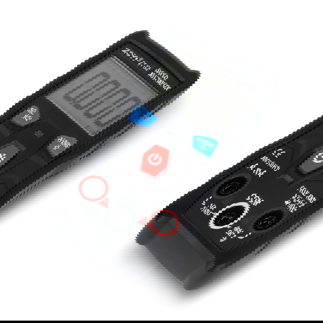 ZOYI ZT‑S4 to nowoczesny multimetr cyfrowy, który automatycznie rozpoznaje mierzony sygnał i dobiera odpowiedni zakres oraz funkcję pomiarową, oferując wyjątkowo intuicyjną obsługę. Urządzenie umożliwia pomiar napięcia, prądu, rezystancji, pojemności, częstotliwości oraz temperatury, a także testowanie diod i ciągłości obwodu. Zastosowana technologia True RMS zapewnia dokładne wskazania nawet przy zniekształconych sygnałach. Dodatkowe funkcje, takie jak NCV (bezkontaktowe wykrywanie napięcia), latarka LED, podświetlany ekran, Data Hold czy automatyczne wyłączanie, zwiększają komfort i bezpieczeństwo użytkowania. Dzięki niewielkim wymiarom i wadze, ZT‑S4 jest idealnym narzędziem do codziennej pracy w domu, warsztacie czy terenie.