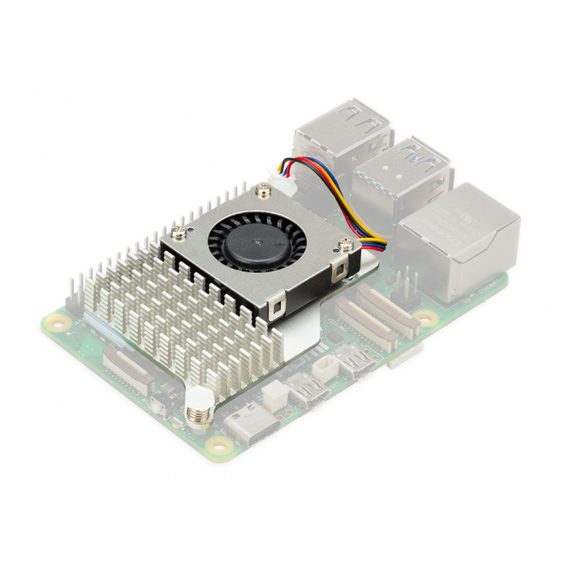 Radiator z wentylatorem Raspberry Pi Active Cooler - aktywny system chłodzenia, dający możliwość regulacji prędkości obrotów oraz umożliwiający dostęp zarówno do złącz microHDMI, jak i karty microSD, zasilania, a także złącz GPIO. |