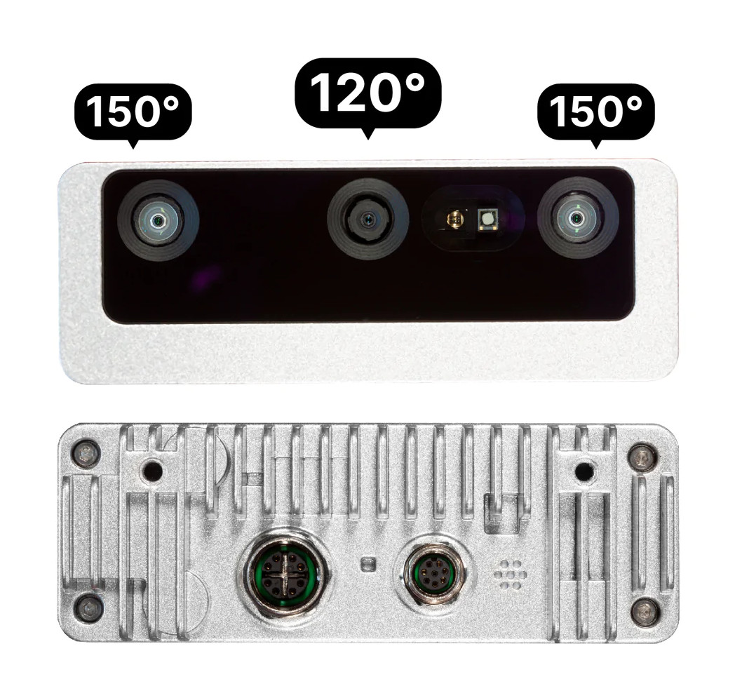 Oak-D Pro W PoE to kamera wyprodukowana przez firmę Luxonis, która należy do rodziny otwartych sprzętowo systemów inteligentnych kamer napędzanych przez koprocesor Movidius Myriad X firmy Intel. Oferuje moc przetwarzania 4 TOPS i daje możliwość uruchomienia dowolnego modelu AI. Została wyposażona w diodę LED IR (do night-vision) oraz laserowy projektor punktowy IR (domyślnie wyłączony), umożliwiający aktywny pomiar głębokości. Urządzenie wyposażone jest w trzy kamery - dwie kamery stereo OV9282 1280 x 800 px oraz jedną kamerą IMX378 Fixed-Focus umożliwiającą przechwytywanie kolorowych obrazów w rozdzielczości 4032 x 3040 px. Luxonis Oak-D Pro W PoE wykorzystuje technologię Power-over-Ethernet (PoE) do komunikacji i zasilania. Zapewnia pełną zgodność ze standardami 802.3af i PoE Class 3 przy prędkościach 1000BASE-T (1 Gb/s). Posiada przemysłowe złącze M12 PoE (zamiast RJ45), dodatkowe złącze M8 przeznaczone do łączności IO, port USB 2.0 (D+, D-), złącze kamery IOs (FSIN, STROBE), port zasilania i jeden pomocniczy GPIO.