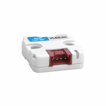 Mini ToF-90° to ultrakompaktowy moduł pomiaru odległości w technologii Time of Flight (ToF), wyposażony w precyzyjny sensor VL53L0X. Dzięki obróceniu modułu lasera o 90°, detekcja odbywa się horyzontalnie, co umożliwia zastosowanie w aplikacjach wymagających pomiaru „do przodu”, np. w robotyce mobilnej czy systemach unikania przeszkód. Moduł pozwala na pomiar odległości w zakresie od 3 cm do 200 cm z dokładnością do ±3% i rozdzielczością 1 mm. Kąt widzenia wynosi 25°, a czas reakcji to mniej niż 30 ms. Dzięki interfejsowi I2C jest łatwy do integracji z popularnymi platformami rozwojowymi.