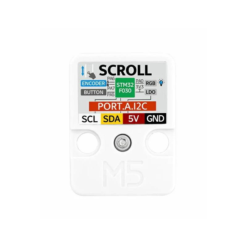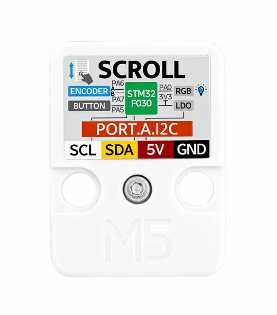 Scroll Unit obsługuje interfejs I2C (adres 0x40), co umożliwia łatwą integrację z wieloma platformami, takimi jak Arduino, M5Stack czy ESP32. Można go programować w Arduino IDE oraz UIFlow 2.0. Dostępna jest także oficjalna biblioteka M5Unit Scroll, która umożliwia obsługę enkodera i diody RGB przy minimalnym wysiłku programistycznym. Moduł jest kompatybilny z modułami deweloperskimi M5Stack (Core, Core2, CoreS3, Atom Lite, StickC PLUS) oraz innymi urządzeniami obsługującymi I2C.