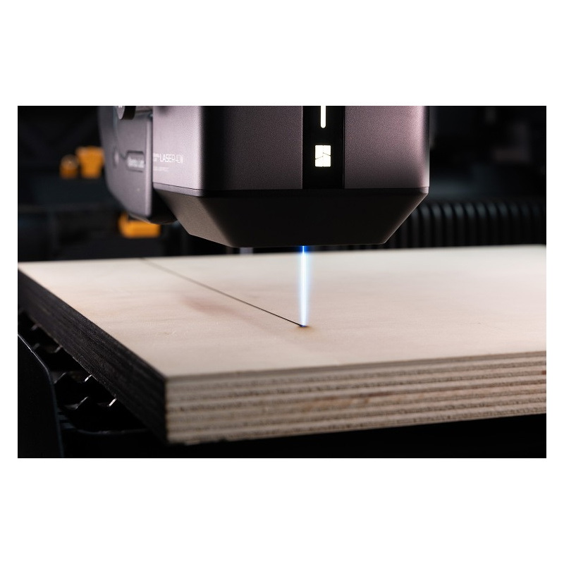 - Skoncentrowana wiązka 455 nm: umożliwia pracę z wieloma materiałami, w tym sklejką, ciemnym akrylem i skórą