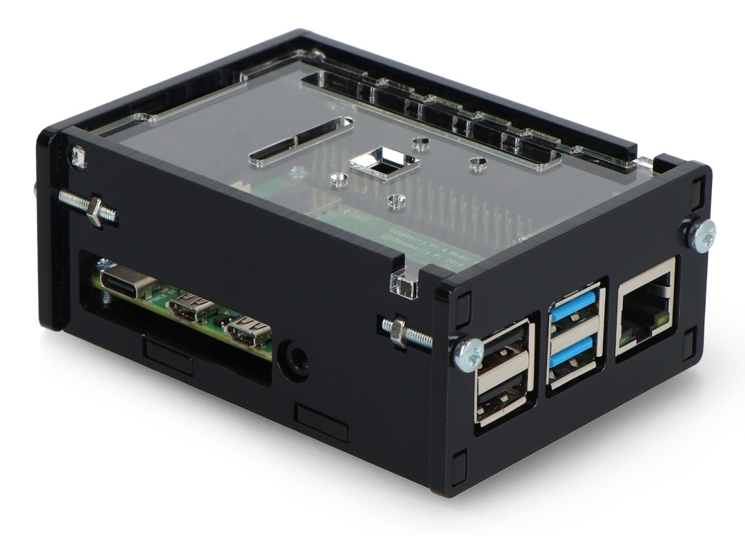 - Estetyczny wygląd: połączenie czarnego i przezroczystego akrylu nadaje obudowie nowoczesnego charakteru