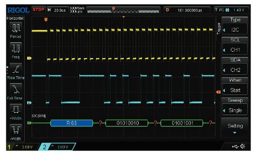 Model DS1102Z-E obsługuje dekodowanie magistral RS232, UART, I2C i SPI. Dzięki temu możesz łatwo monitorować i analizować komunikację w złożonych systemach embedded.