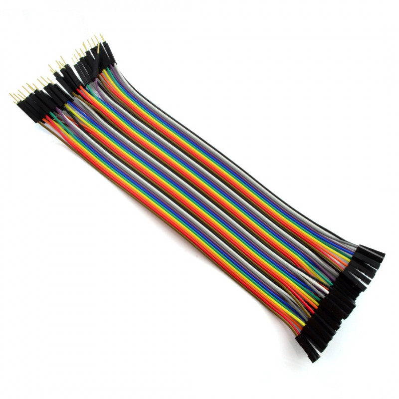 Zestaw zawiera 40 szt. różnokolorowych przewodów połączeniowych o długości 20 cm. Zakończone są z jednej strony złączem żeńskim, z drugiej końcówką męskaPrzewody można rozdzielać na pojedyncze sztuki. Przewody doskonale nadają się do łączenia pól na płytkach stykowych i w zestawach (np.: Arduino lub STM32Discovery). Długość przewodu wynosi 20 cm.