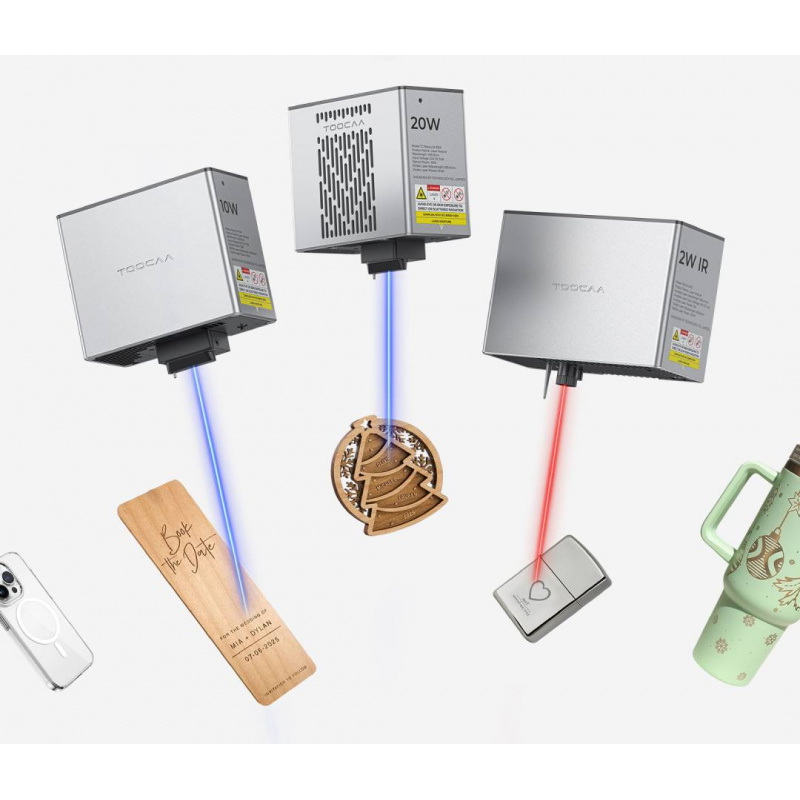 Wymienny moduł laserowy obsługuje opcje IR 2 W , 10 W i 20 W, co pozwala dostosować się do szerokiej gamy materiałów. W zestawie znajduje się tylko moduł 10 W.