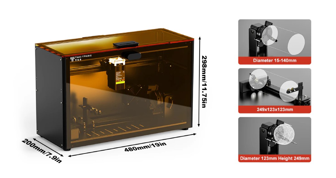 - Sphere Rotary: przeznaczony do grawerowania kulistych przedmiotów, takich jak piłki, kule ozdobne czy obiekty 3D