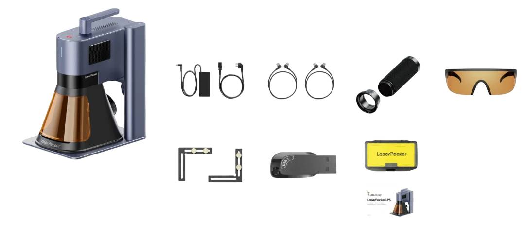 Opis produktu: LaserPecker LP5 - światłowodowa i diodowa grawerka laserowa 20 W - zestaw podstawowy
