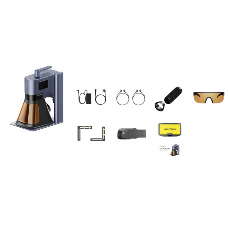 Opis produktu: LaserPecker LP5 - światłowodowa i diodowa grawerka laserowa 20 W - zestaw z obudową