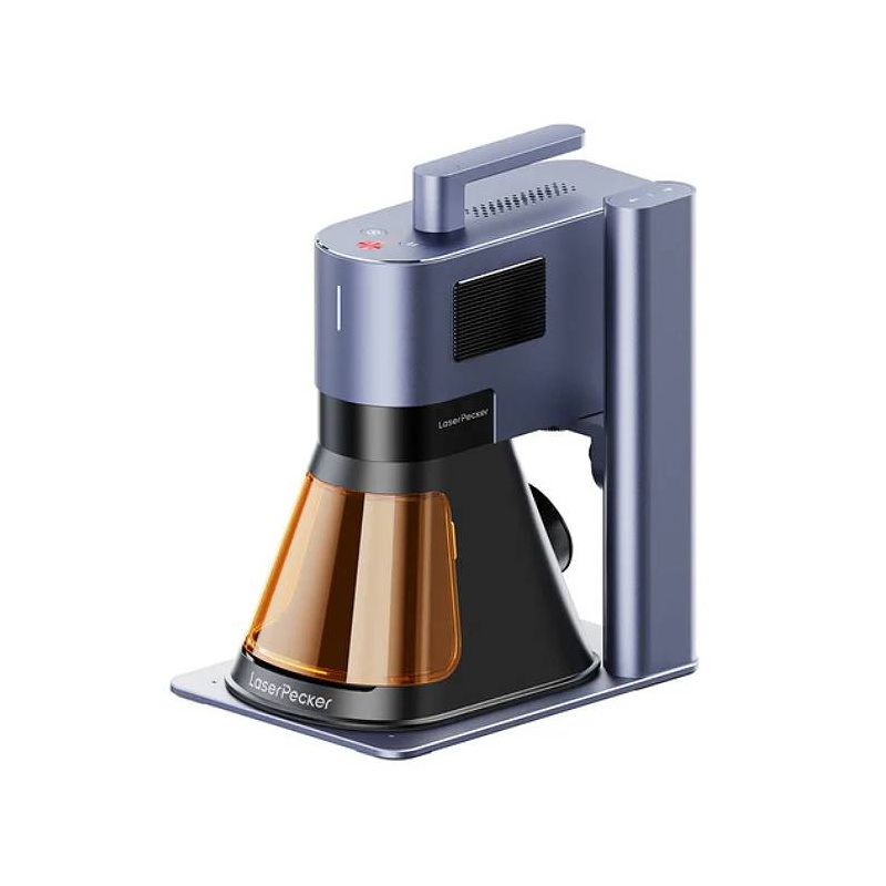 LaserPecker LP5 to nowoczesna, kompaktowa grawerka laserowa, która łączy w jednej konstrukcji dwa źródła lasera: diodowy laser 20 W o długości fali 450 nm oraz światłowodowy laser 20 W (1064 nm). To połączenie zapewnia efektywną obróbkę niemal wszystkich popularnych materiałów - od drewna i szkła, po metale szlachetne, aluminium i tytan. Oferuje prędkość pracy do 10000 mm/s oraz precyzję na poziomie 0,0027 mm, co umożliwia realizację projektów wymagających wysokiej dokładności i powtarzalności. Kompaktowa konstrukcja oraz niewielka masa jednostki laserowej wynosząca 3,36 kg pozwalają na pracę w trybie mobilnym oraz pod różnymi kątami. LaserPecker LP5 współpracuje z darmowym oprogramowaniem LaserPecker Design Space dostępnym na komputery oraz urządzenia mobilne, a także ze środowiskiem LightBurn. W zestawie znajduje się również dedykowana obudowa, która umożliwia bezpieczną eksploatację lasera w pomieszczeniach zamkniętych. Obudowa spełnia wymagania klasy bezpieczeństwa klasy 1, zapewnia wysoką skuteczność filtracji promieniowania laserowego, wyposażona jest w czujniki otwarcia drzwi oraz przycisk awaryjnego zatrzymania.