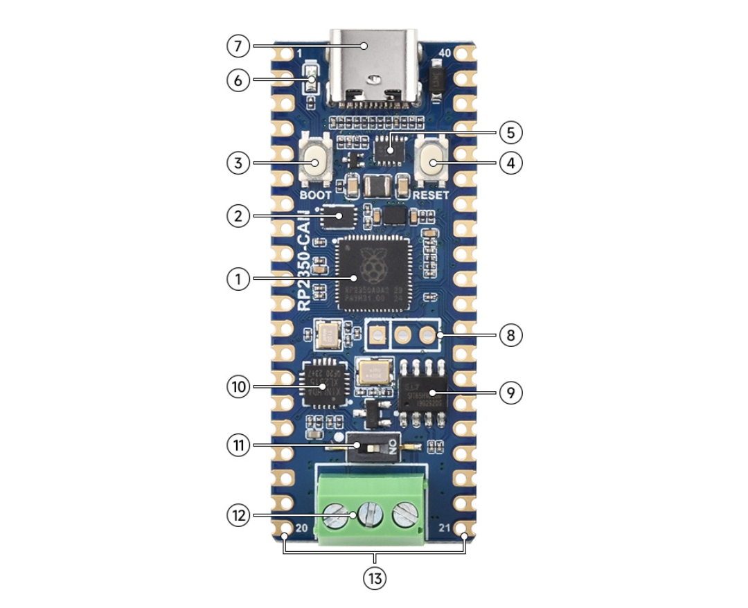 Opis produktu: RP2350-CAN - płytka rozwojowa z mikrokontrolerem RP2350A - XL2515 - Waveshare 30945
