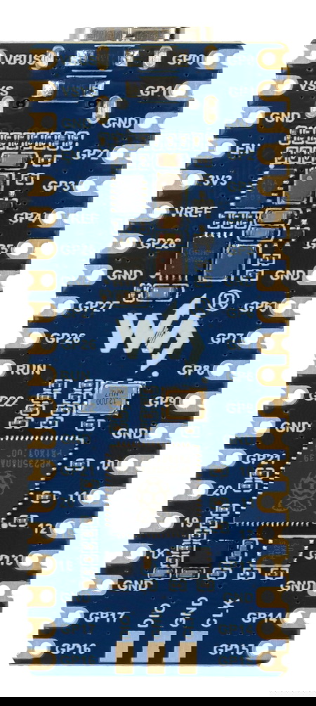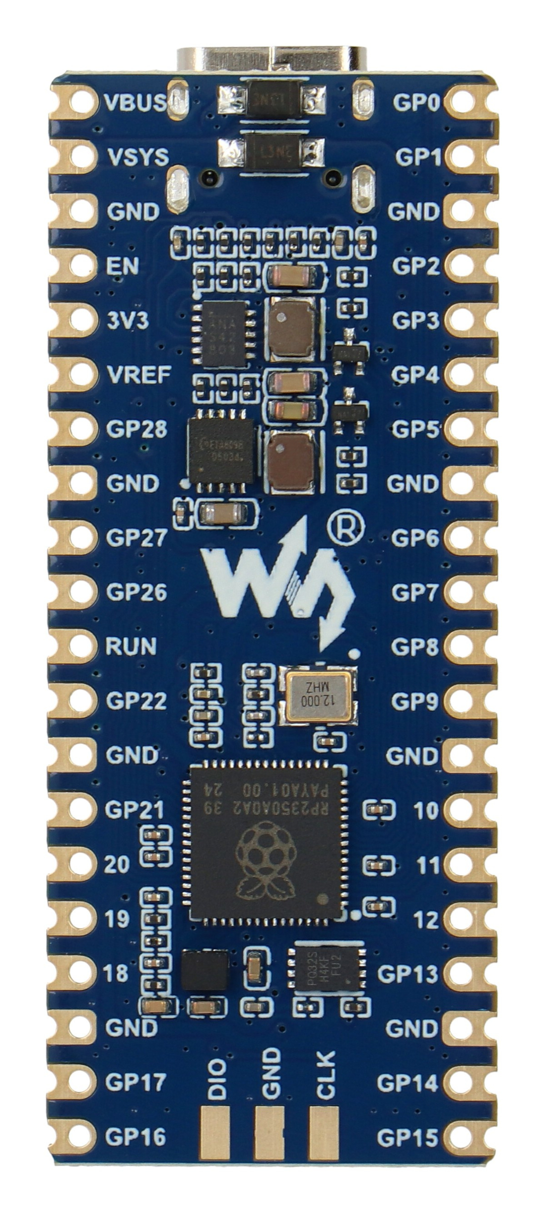 - Interfejsy: 2x SPI, 2x I2C, 2x UART, 4x ADC 12-bitowe, PWM: 16 kanałów, GPIO (26 wielofunkcyjnych pinów konfigurowalnych)