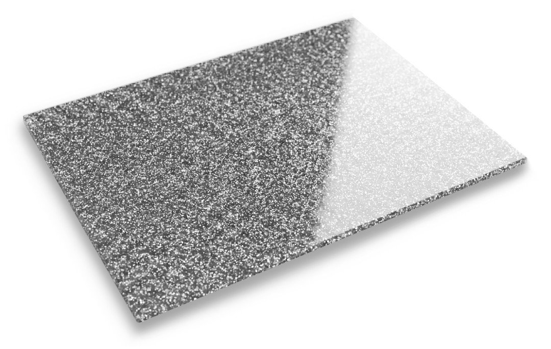 Wypełniona drobinkami brokatu płyta akrylowa (PMMA) została stworzona z wykorzystaniem innowacyjnej technologii Cell CAST, co zapewnia doskonałą jakość optyczną, powtarzalne efekty i wysoki poziom dokładności obróbki. Arkusz posiada dwie różne powierzchnie - jedna strona jest połyskująca, a druga matowa - co zapewnienia wysoką jakość oraz elastyczność twórczą, a także daje możliwość dopasowania materiału do konkretnego projektu m.in. ozdób, nagród i statuetek, czy też elementów użytkowych. Dzięki właściwej sztywności materiału i łatwości modyfikowania - bardzo dobrze nada się do pracy z laserem CO₂, do frezowania CNC, cięcia mechanicznego oraz ręcznego formowania. Płyta jest wszechstronnym wyborem wśród narzędzi umożliwiających projektowanie artystyczne, własnoręczne tworzenie prezentów, ozdób i dekoracji, a także kreowanie zastosowań komercyjnych.