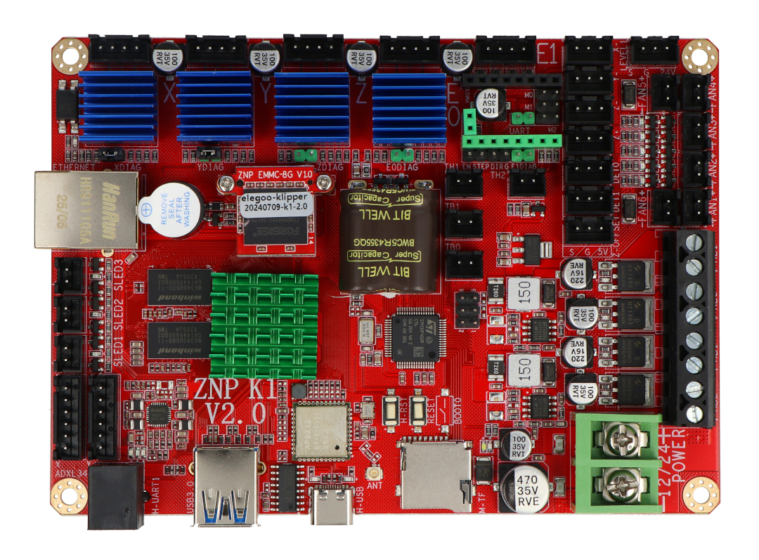Płyta główna marki Elegoo dedykowana do drukarek 3D z serii Neptune 4 Plus i Neptune 4 Max. Wyposażona w czterordzeniowy, 64-bitowy procesor ARM o taktowaniu 1,5 GHz oraz 8 GB pamięci ROM pozwala na obsługę złożonych modeli 3D i płynną pracę nawet przy wysokich prędkościach druku. Płyta została fabrycznie wyposażona w firmware Klipper, co zapewnia płynne, szybkie i ciche drukowanie, a także wsparcie zaawansowanych funkcji takich jak input shaping pressure advance. W połączeniu z sensorami przyspieszenia na osiach X i Y, system automatycznie kompensuje rezonanse, poprawiając jakość druku i redukując artefakty.