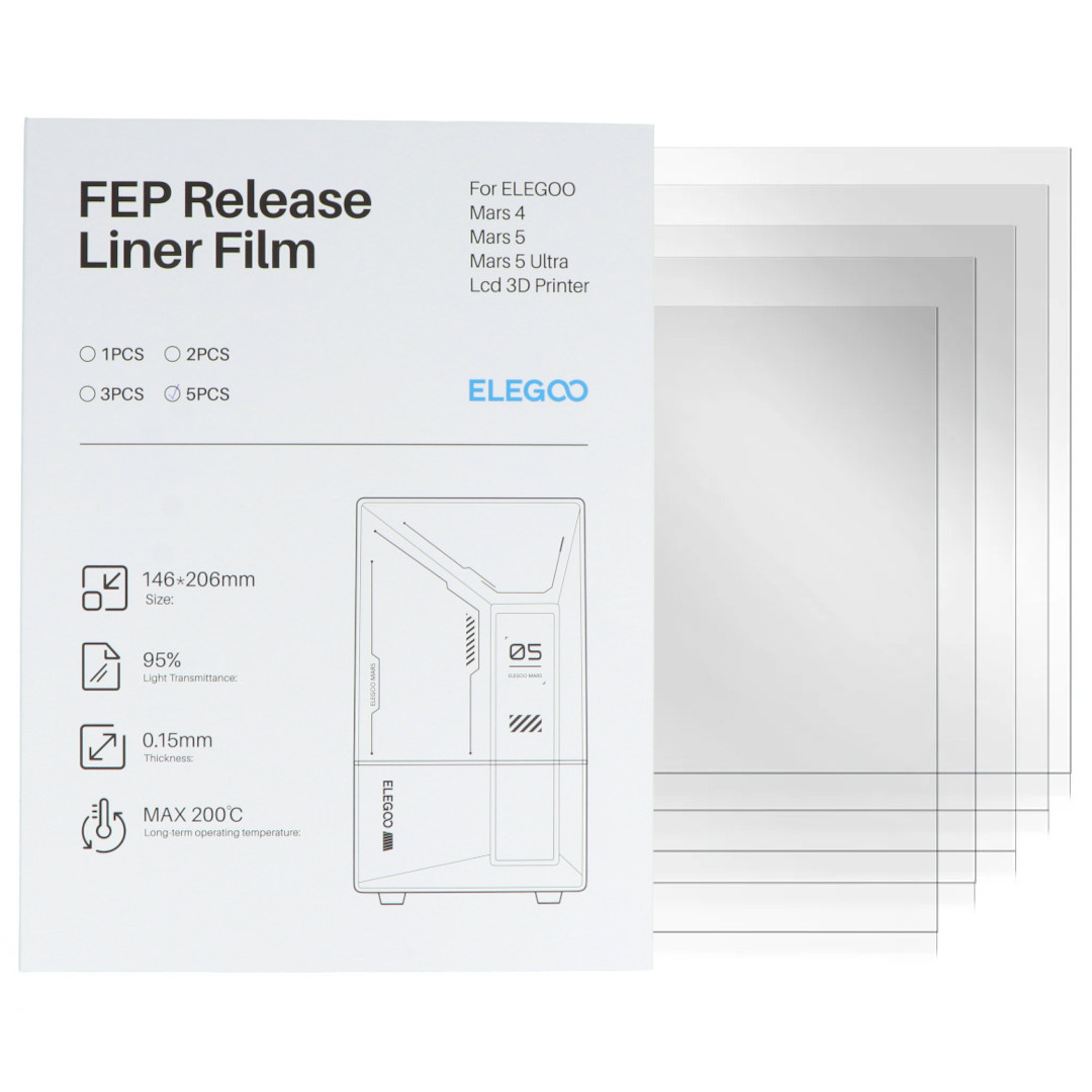 Opis produktu: Folia FEP do drukarek 3D Elegoo Mars 4 / 5 / 5 Ultra - 206 x 146 mm - 5 szt.