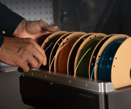 ACE Pro pozwala na realizację projektów w aż czterech kolorach w jednym przebiegu drukowania. Filamenty są automatycznie zmieniane zgodnie z ustawionym wzorem, co usprawnia proces bez konieczności ręcznego przełączania. Synchronizacja RFID zapewnia, że drukarka zawsze korzysta z optymalnych parametrów dla danego materiału.