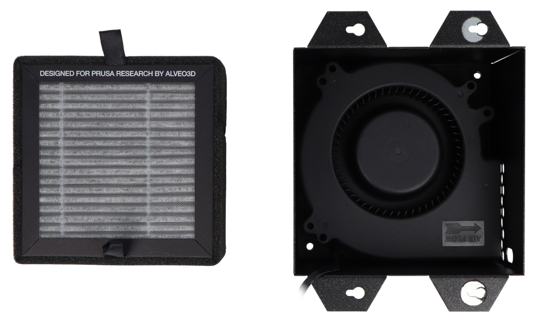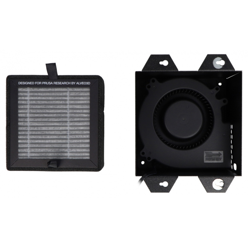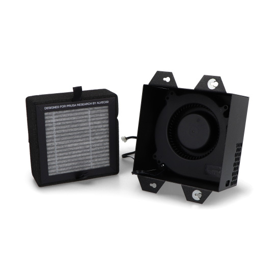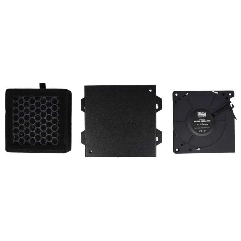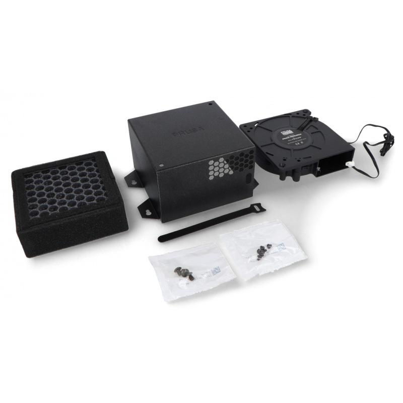 Zaawansowany system filtracji to w pełni zintegrowane rozwiązanie przeznaczone do drukarki Prusa CORE One + i CORE One L, montowane bezpośrednio na tylnym wylocie powietrza urządzenia. Zestaw składa się z dedykowanej obudowy, wysokociśnieniowej dmuchawy oraz wydajnego filtra HEPA połączonego z granulkami węgla aktywnego. Całość została zaprojektowana tak, aby skutecznie ograniczać emisję zanieczyszczeń powstających podczas druku 3D, przy jednoczesnym zachowaniu pełnej kompatybilności z firmware drukarki.