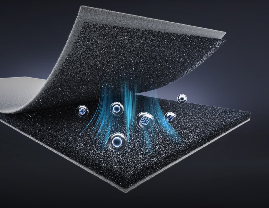 Gęsta siatka z aż 400 razy mniejszych cząsteczek węglowych niż standardowo, zwiększa absorpcję nieprzyjemnych zapachów.