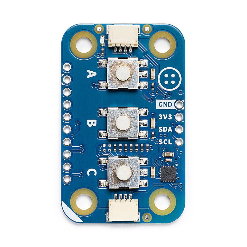 Opis produktu: Arduino Modulino Buttons - moduł interaktywny z 3 przyciskami i diodami LED - Qwiic - ABX00110