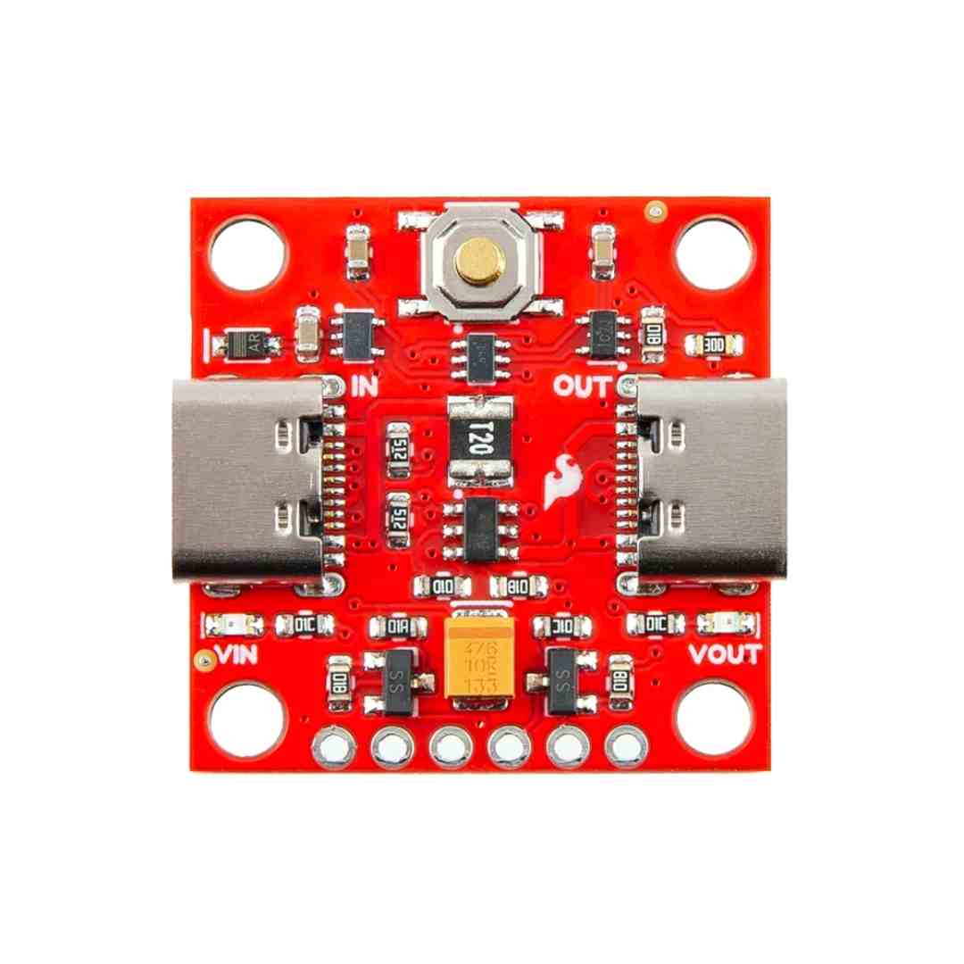 Soft Power Switch z USB typu C od SparkFun to przełącznik zasilania, który działa na zasadzie pasywnego przycisku, ale z możliwością sterowania za pomocą oprogramowania. Przycisk działa podobnie jak włącznik laptopa: pojedyncze naciśnięcie włącza system, a kolejne naciśnięcie (po interwencji mikrokontrolera) może go wyłączyć. Jeśli pojawią się problemy, wystarczy przytrzymać przycisk przez około 10 sekund, aby wymusić wyłączenie systemu. Przełącznik jest idealny do zastosowań w projektach opartych na płytkach Thing Plus i innych urządzeniach, gdzie potrzebny jest łatwy sposób na kontrolowanie zasilania. Oferuje dwa złącza USB typu C, a także wersję ze złączami JST 2 mm do podłączenia akumulatora. Charakteryzuje się solidnym, cyfrowym designem opartym na układach Texas Instruments i zapewnia bardzo niski pobór prądu w trybie czuwania, co przekłada się na oszczędność energii w urządzeniach zasilanych bateryjnie. Wyposażony w diody LED wskazujące stan zasilania (wejście i wyjście), a także bezpiecznik 2 A, zapewniając ochronę przed przeciążeniami.