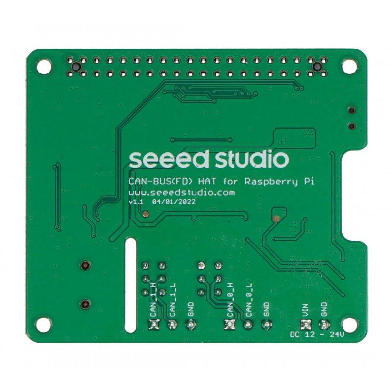 Nakładka firmy Seeedstudio do minikomputerów Raspberry Pi. Obsługuje interfejs CAN FD z prędkością transmisji do 8 Mb/s, jest on szybszą i wydajniejszą wersją tradycyjnego interfejsu CAN. Nakładka oparta została na kontrolerze MCP2518FD oraz transceiverze MCP2558FD. Urządzenie do komunikacji z minikomputerem wykorzystuje interfejs SPI. Nakładka może być zasilana przy wykorzystaniu pinów GPIO Raspberry Pi lub za pomocą złącz śrubowych przy użyciu napięcia DC z zakresu od 12 V do 24 V. Na płytce znajdują się również złącza Grove, rezystory 120 Ω oraz włączniki do sterowania ich pracą.
