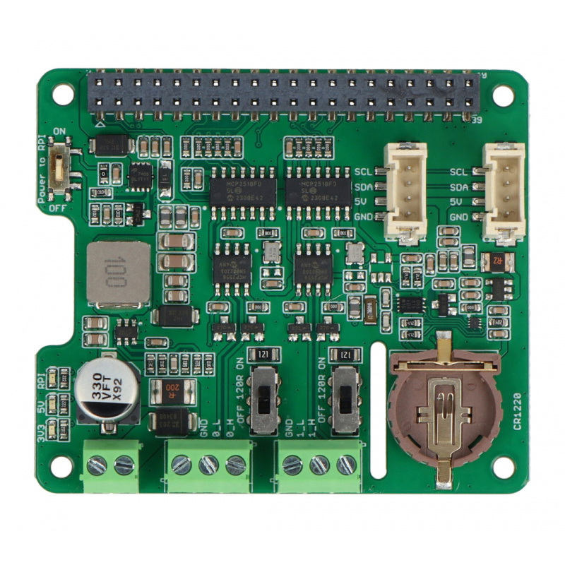 Płytka przeznaczona do jest współpracy z minikomputerem Raspberry Pi. Dwukanałowa nakładka CAN BUS do Raspberry Pi charakteryzuje się zdolnością obsługi interfejsu CAN FD z prędkością transmisji danych na poziomie 8 Mb/s.