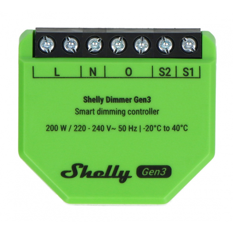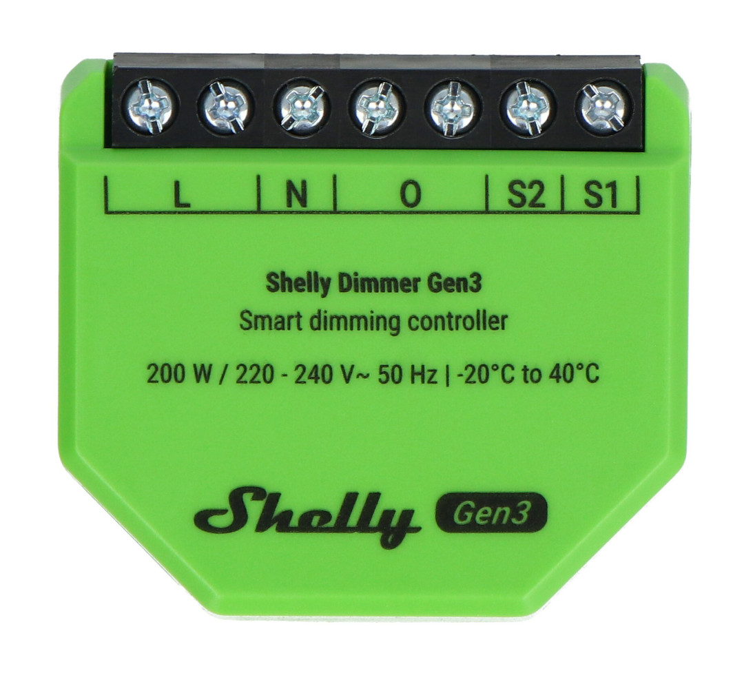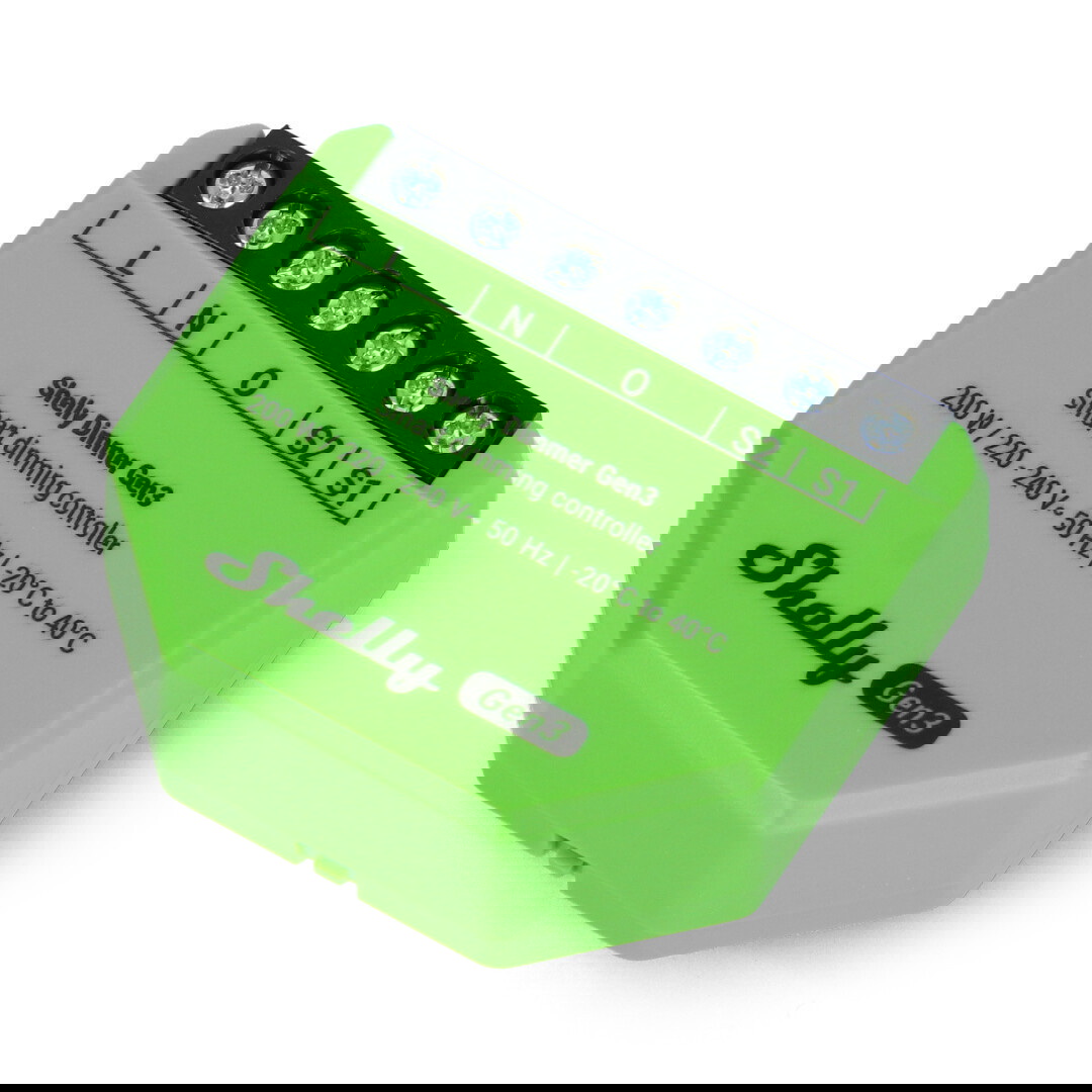 Shelly Dimmer Gen3 to jednokanałowy sterownik, który daje możliwość połączenia dwóch sposobów sprawowania kontroli nad oświetleniem: lokalnej (za pomocą używania tradycyjnych przycisków) oraz zdalnej (z poziomu WiFi oraz dzięki automatyzacjom Smart Home). Kontroler obsługuje harmonogramy, tryb nocny, MQTT, skrypty oraz integracje z Google Home, Alexa i Home Assistant. Jest wyposażony w czujnik temperatury, funkcję repeatera WiFi oraz bramy BLE, co wpływa również na zwiększenie zasięgu innych urządzeń ekosystemu Shelly. Dzięki funkcji płynnego przejścia i definiowania minimalnej / maksymalnej jasności, użytkownik może precyzyjnie dostosować warunki oświetleniowe. Obsługa do 20 harmonogramów i 20 webhooków, a także możliwość uruchamiania lokalnych scen i skryptów czyni z niego wyjątkowo wszechstronny komponent automatyki domowej. Dimmer Gen3 nie wymaga podłączenia przewodu neutralnego, dzięki czemu świetnie nadaje się do modernizacji istniejących już instalacji.