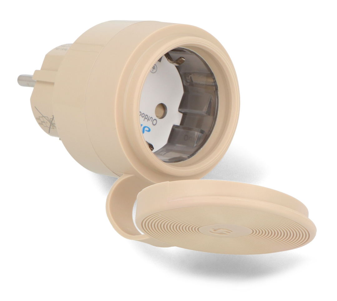 Opis produktu: Shelly Outdoor Plug S Gen3 - inteligentne gniazdko zewnętrzne WiFi / Bluetooth / Matter z pomiarem energii - mokka