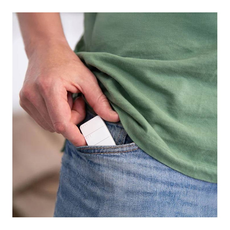 Kompaktowy rozmiar umożliwia noszenie w kieszeni, a magnetyczny uchwyt pozwala na montaż pilota na ścianie lub metalowych powierzchniach.