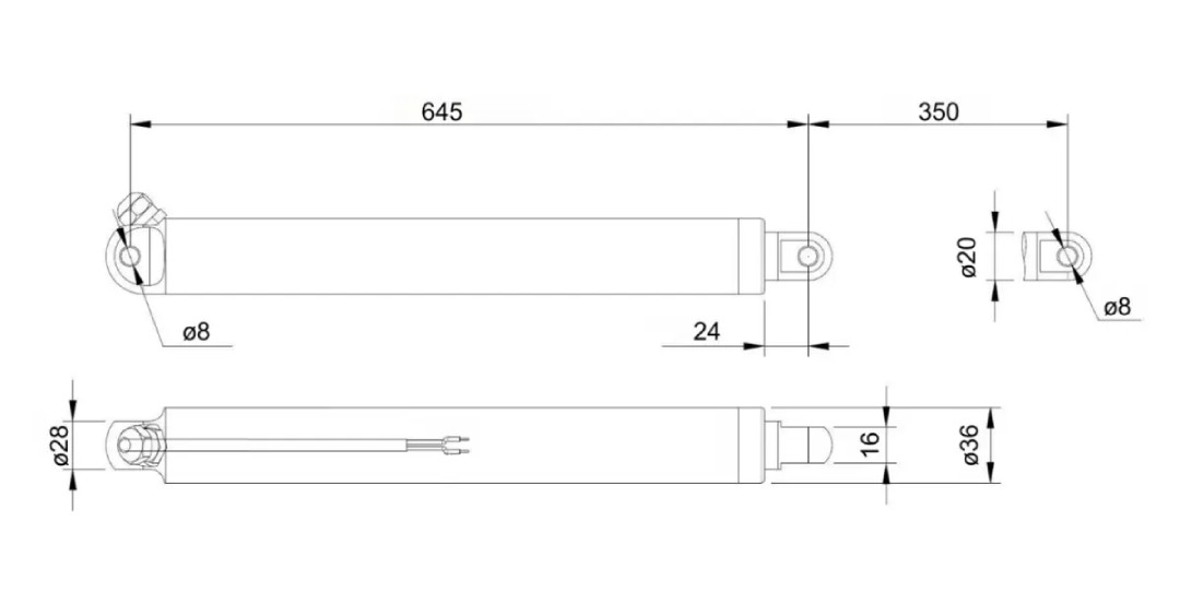 Opis produktu: Siłownik tubowy TLA-2 2000 N 9 mm/s 12 V z wyłącznikami krańcowymi - wysuw 35 cm