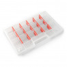 Organizer NORT08 jest idealnym rozwiązaniem do przechowywania drobnych elementów elektronicznych, takich jak rezystory, kondensatory, diody, małe śrubki i inne drobne części w elektronice montażowej. Przyda się praktycznie wszędzie. Dzięki możliwości dowolnej konfiguracji przegródek możesz dostosować wnętrze organizera do indywidualnych potrzeb, co pozwala na efektywne zarządzanie przestrzenią i ułatwia utrzymanie porządku. Rączka umożliwia przenoszenie organizera w warsztacie lub podczas prac w terenie, a płaski design niesie ze sobą łatwe przechowywanie organizera w szufladach, na półkach lub w torbach narzędziowych tak, by zajmował minimalną przestrzeń.