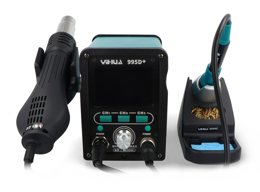 Stacja lutownicza hotair i grotowa Yihua 995D+ z wentylatorem w kolbie - 720W
