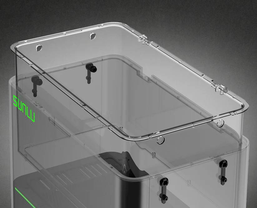 Konstrukcja Sunlu FilaDryer E2 została opracowana tak, aby ograniczyć dopływ wilgoci z otoczenia i utrzymać stabilną temperaturę w komorze. Jednoczęściowa silikonowa zaślepka otworu wyjścia filamentu oraz silikonowe uszczelki w pokrywie pomagają izolować komorę od pary wodnej. Zastosowany system domykania z elementami magnetycznymi zwiększa szczelność i poprawia utrzymanie ciepła. Dwukomorowa, wielowarstwowa izolacja w górnej, środkowej i dolnej części obudowy umożliwia stabilną pracę w temperaturach przekraczających 100°C. Możesz dzięki temu skuteczniej suszyć i wyżarzać materiały techniczne, ograniczając ryzyko wtórnego zawilgocenia w trakcie pracy urządzenia.