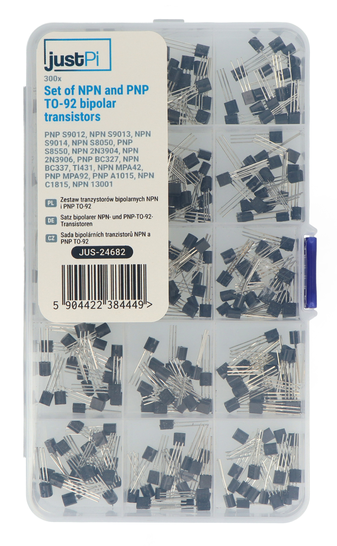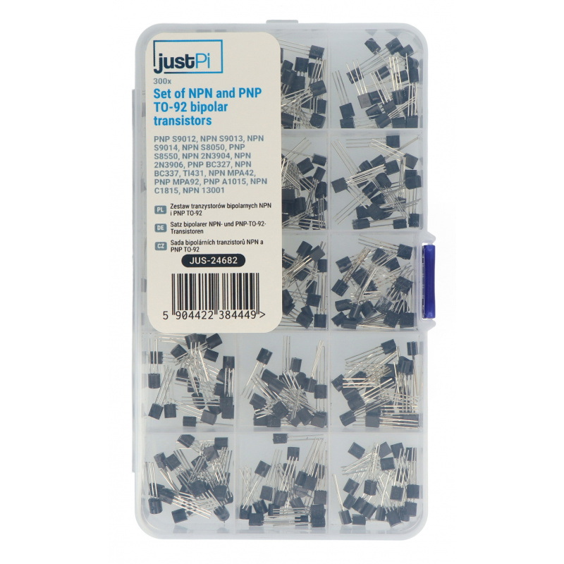 Opis produktu: Zestaw tranzystorów bipolarnych NPN i PNP TO-92 - 15 wartości - E49 - 300szt. - justPi