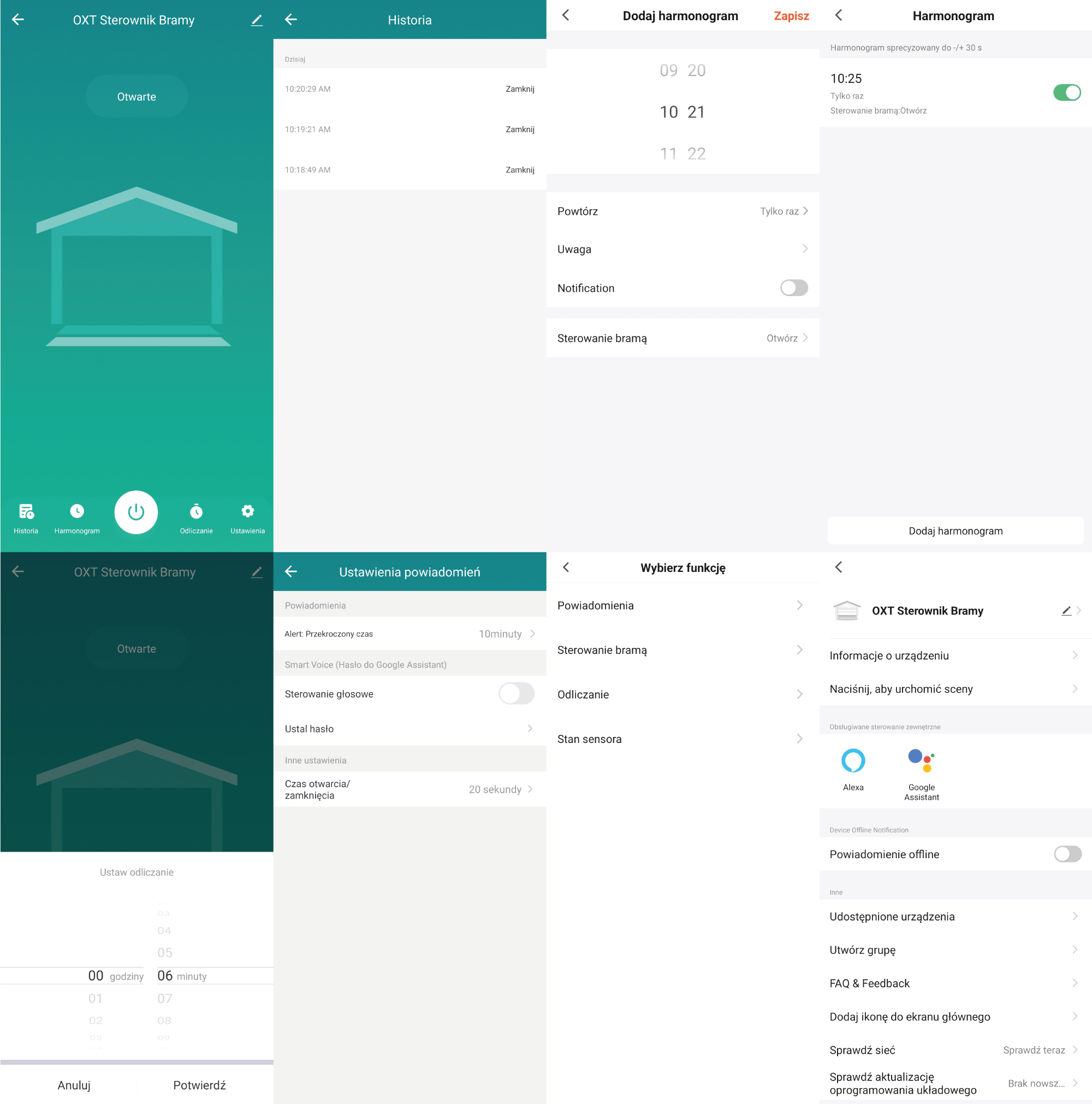 - Tworzenie automatyzacji i harmonogramów: automatyczne otwieranie/zamykanie bramy garażowej o określonej porze bądź w zależności od panujących warunków pogodowych