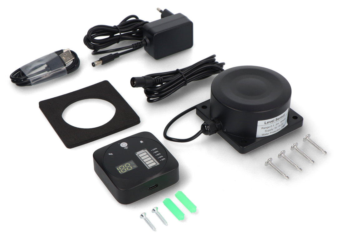 Opis produktu: Tuya - czujnik poziomu cieczy ultrasoniczny z wyświetlaczem LED - WiFi - RTX XLD