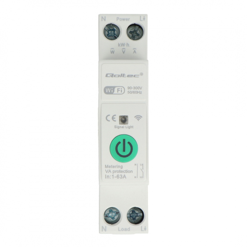Opis produktu: Tuya - przekaźnik jednofazowy z miernikiem energii - 63 A - WiFi - Qoltec 50881