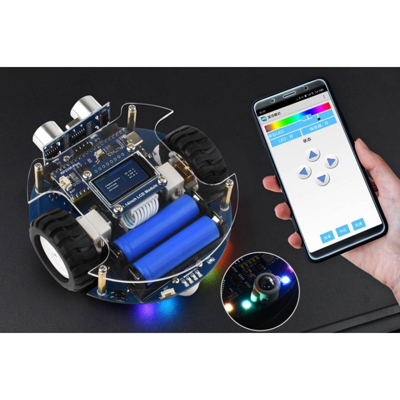 Pico2Go marki Waveshare to kompaktowy i bogato wyposażony robot edukacyjny, który pozwala szybko rozpocząć przygodę z projektowaniem robotów. Dzięki mikrokontrolerowi RP2350-Plus i obsłudze Raspberry Pi Pico, robot oferuje szereg funkcji w pełni zintegrowanych na jednej platformie, eliminując potrzebę skomplikowanego okablowania. Na pokładzie znajdują się m.in. czujniki podczerwieni, czujnik ultradźwiękowy, kolorowy wyświetlacz LCD 1,14'', diody RGB LED, a także napęd oparty na silnikach N20 z przekładniami metalowymi. Oprogramowanie demonstracyjne, zdalne sterowanie Bluetooth i IR, funkcje unikania przeszkód, śledzenia linii oraz tryb śledzenia obiektów czynią ten zestaw doskonałym narzędziem dla uczniów, studentów i hobbystów.