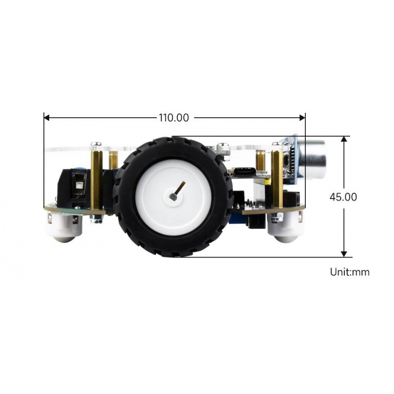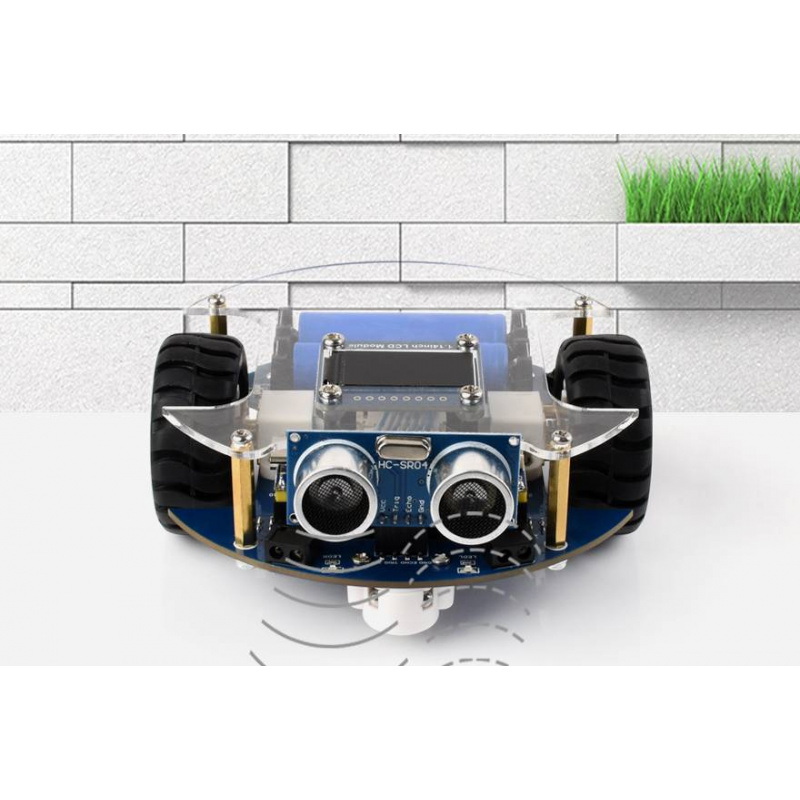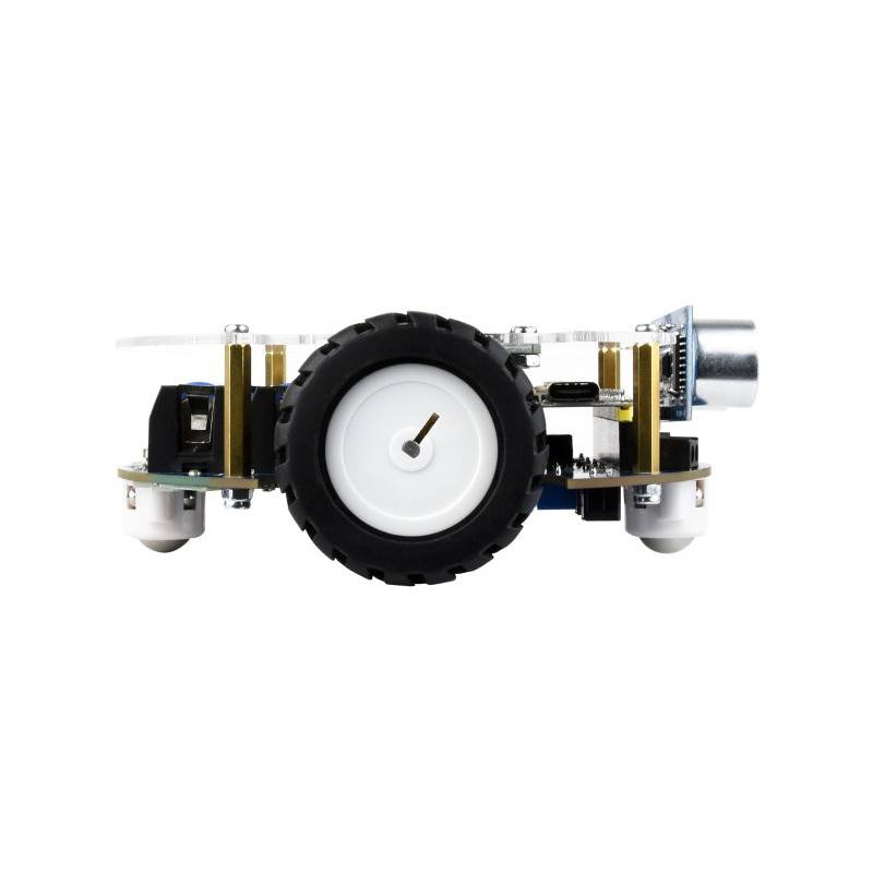 - Zintegrowane czujniki: ultradźwiękowy, 5-kanałowy IR, moduł IR, umożliwiają precyzyjne śledzenie linii i unikanie przeszkód
