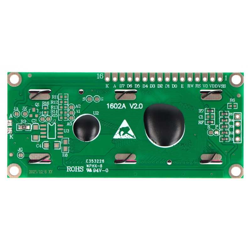 Alfanumeryczny wyświetlacz LCD wyprodukowany przez firmę justPi. Prezentuje wartości w dwóch liniach, po 16 znaków w każdej. Zasilany jest napięciem 5 V. Charakteryzuje się wyjątkowo prostą obsługą, wysoką dostępnością oraz licznym wsparciem dla wielu mikrokontrolerów.