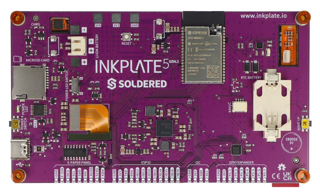 Opis produktu: Inkplate 5 Gen2 - wyświetlacz e-paper 5,2'' 1280 x 720 px - ESP32 - zgodny z Arduino - Soldered 333333