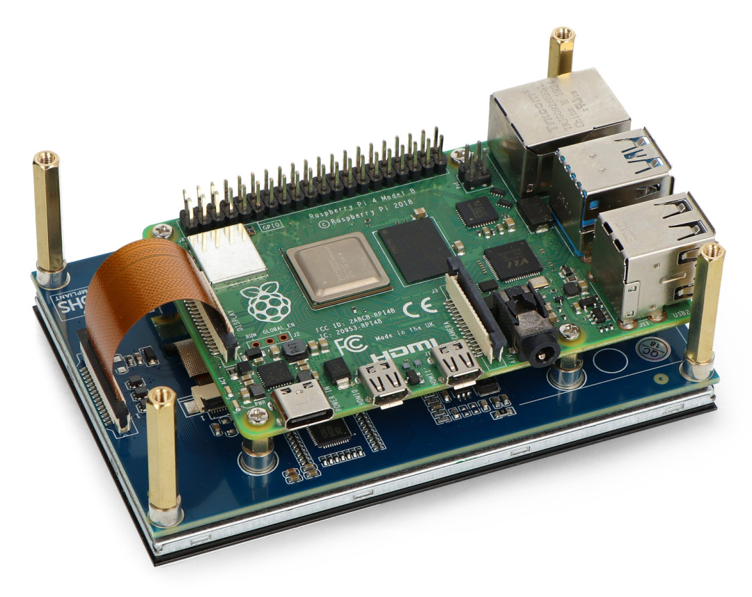 Ekran dotykowy, pojemnościowy LCD IPS o rozdzielczości 800 x 480 px i przekątnej 4,3". Komunikuje się poprzez interfejs DSI z minikomputerem Raspberry Pi 5/4B/3B+/3A+/3B/2B/B+/A+. Do CM3/3+/4 wymagana jest inna karta adaptera. Minikomputer montowany jest na odwrocie ekranu, dzięki czemu jest całkowicie niewidoczny.