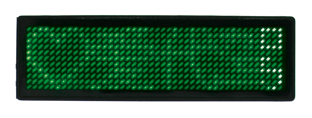 LED Name Tag to elektroniczny identyfikator z zielonym wyświetlaczem LED, pozwalający na dynamiczne prezentowanie imienia, stanowiska, hasła reklamowego lub dowolnej wiadomości.Cechy szczególne