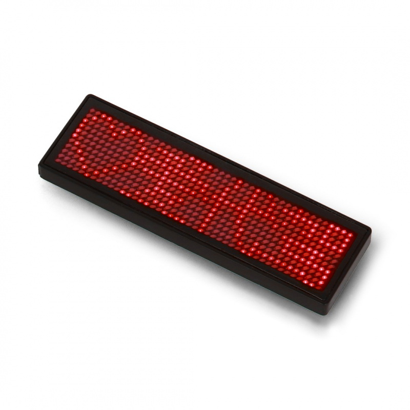 LED Name Tag to elektroniczny identyfikator z czerwonym wyświetlaczem LED, pozwalający na dynamiczne prezentowanie imienia, stanowiska, hasła reklamowego lub dowolnej wiadomości.Cechy szczególne