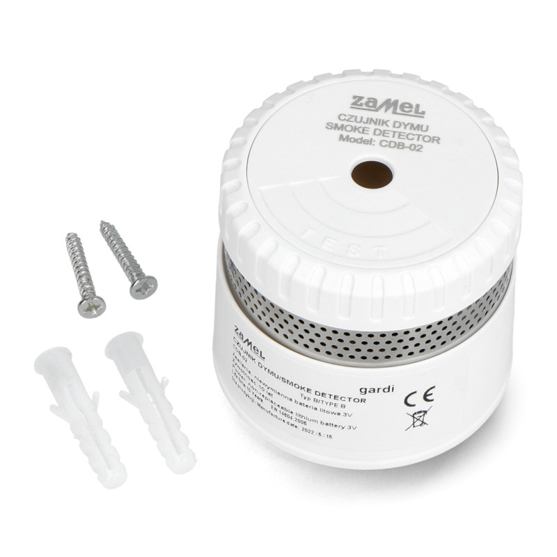 Opis produktu: Czujnik dymu z wbudowaną baterią - Zamel Gardi CDB-02