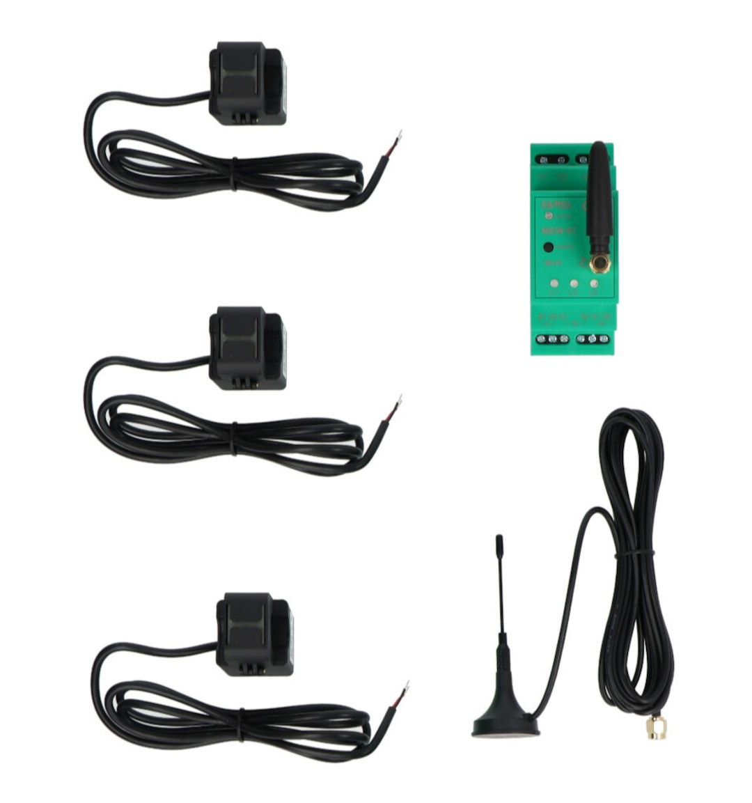 - 3 przekładniki prądowe 100 A (z przewodem 100 cm)