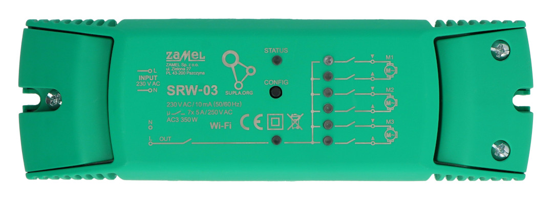 Opis produktu: Zamel Supla SRW-03 - sterownik rolet 230 V WiFi - 3 rolety + 1 kanał - aplikacja Android / iOS