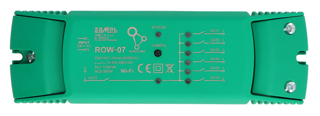 Opis produktu: Zamel Supla ROW-07 - 7x przekaźnik 230 V WiFi - aplikacja Android / iOS
